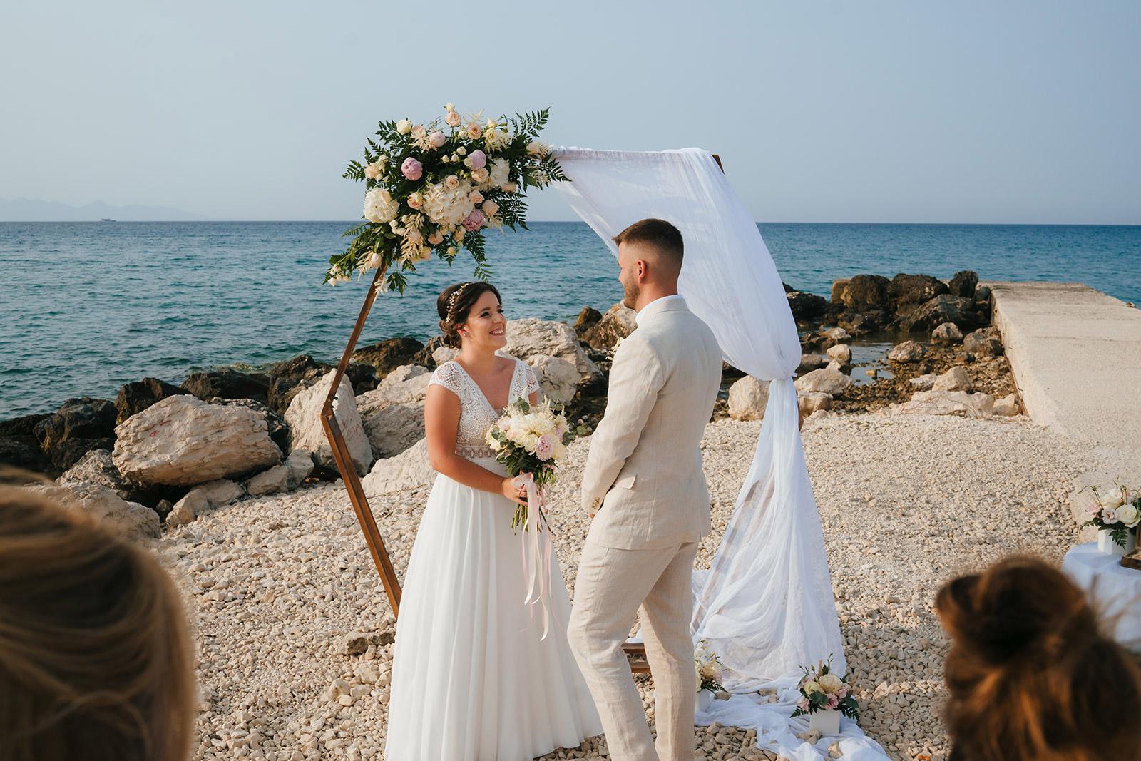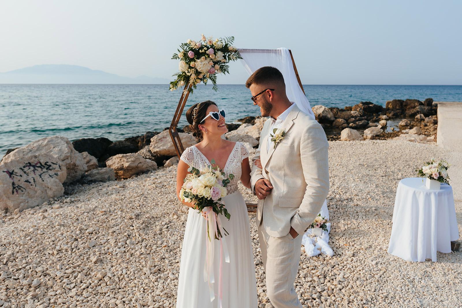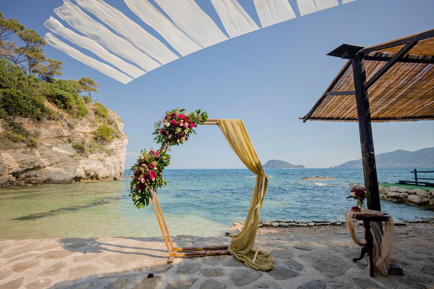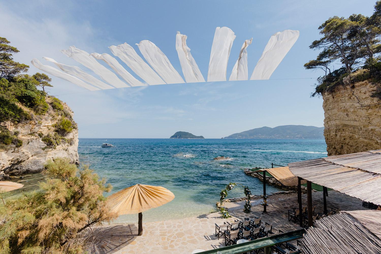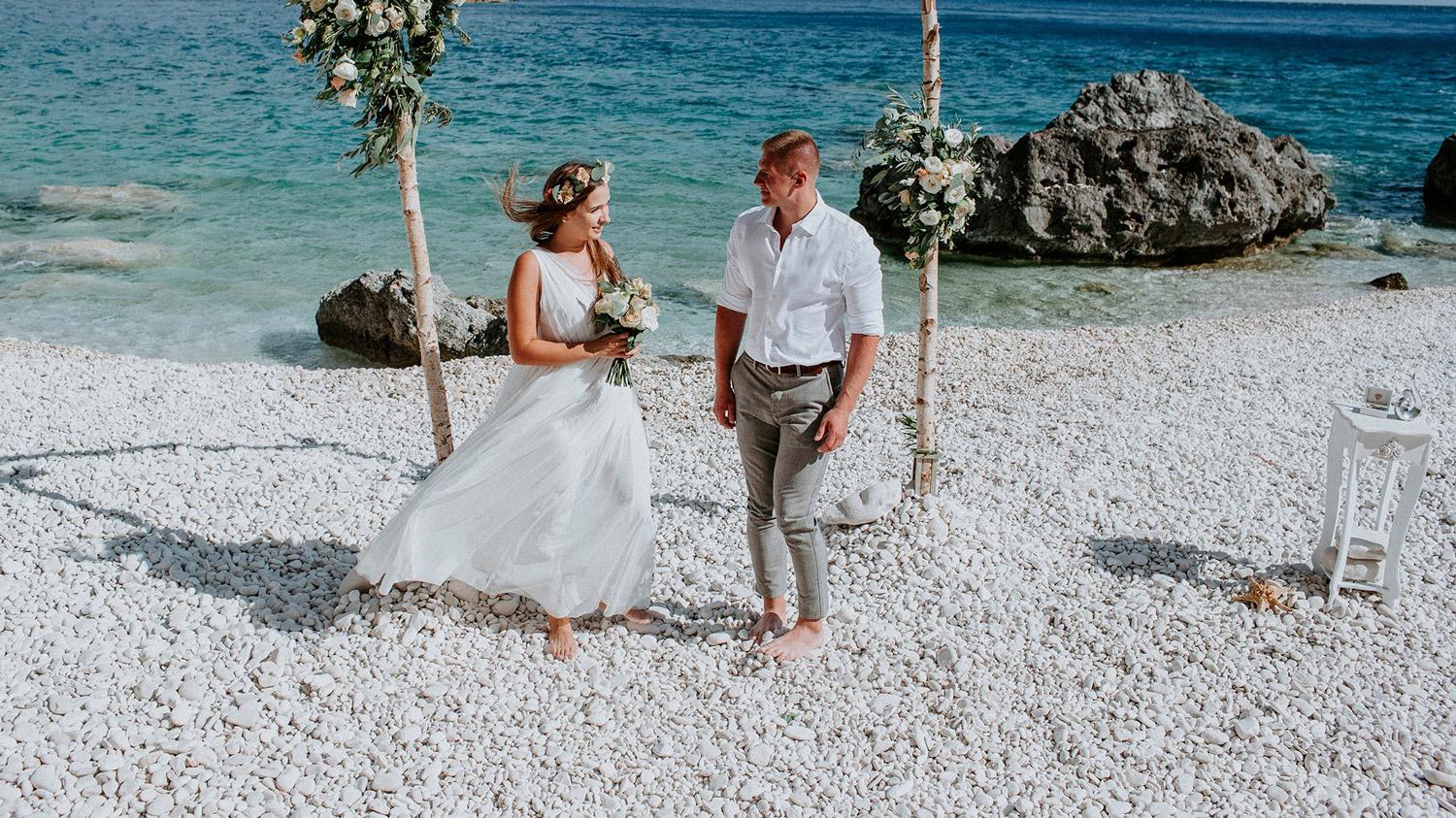 Zakynthos słynie z pięknych, piaszczystych plaż, które świetnie sprawdzają się jako miejsce na spokojną, romantyczną ceremonię ślubną. Organizacja ślubu na plaży wygląda tu inaczej niż w tradycyjnych lokalizacjach, atmosfera jest bardziej swobodna, pełna słońca, luzu i naturalnego uroku.