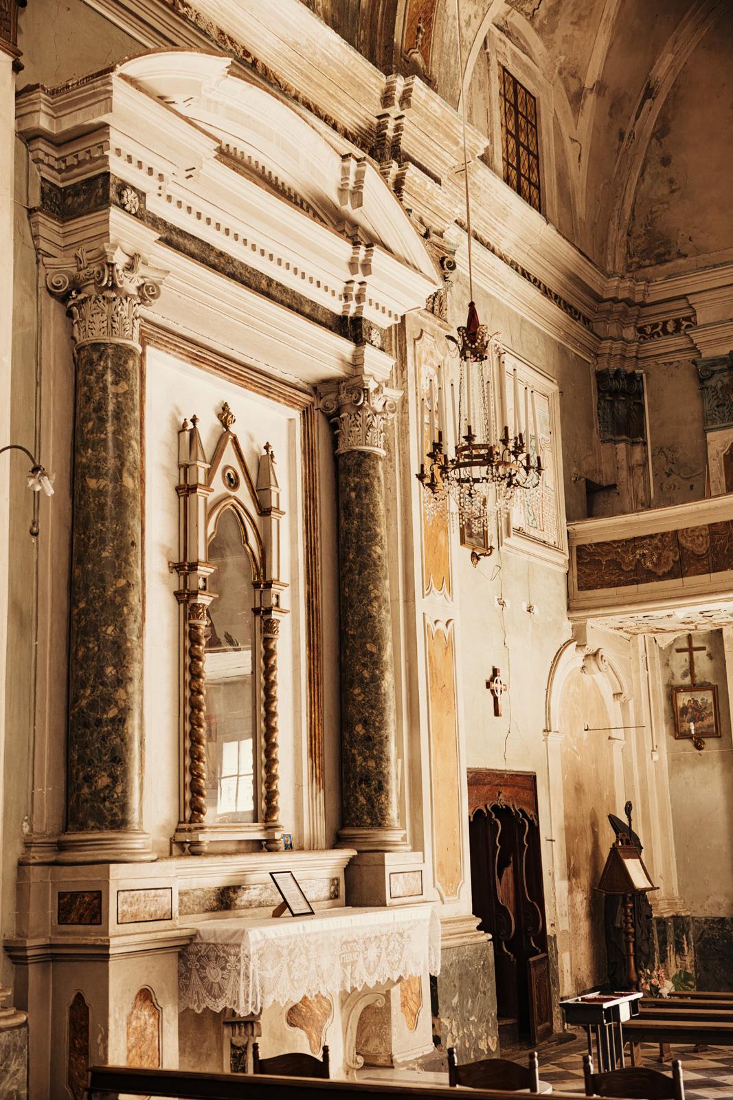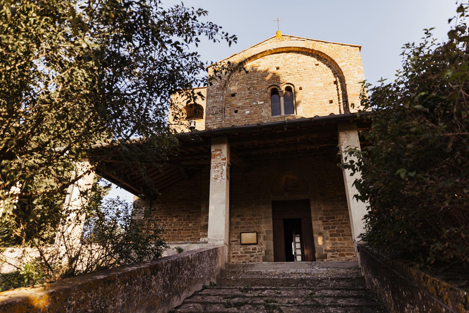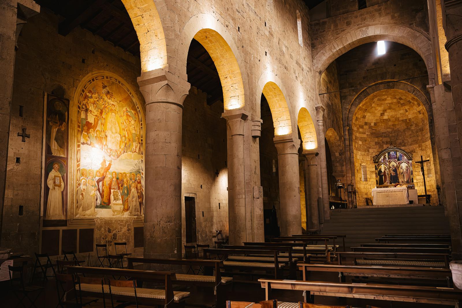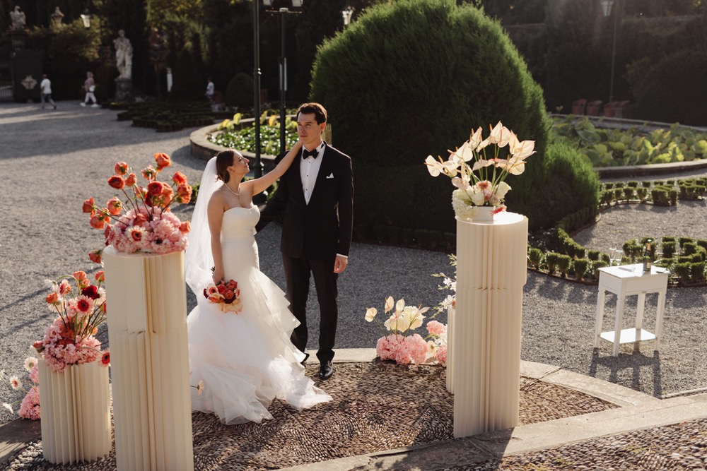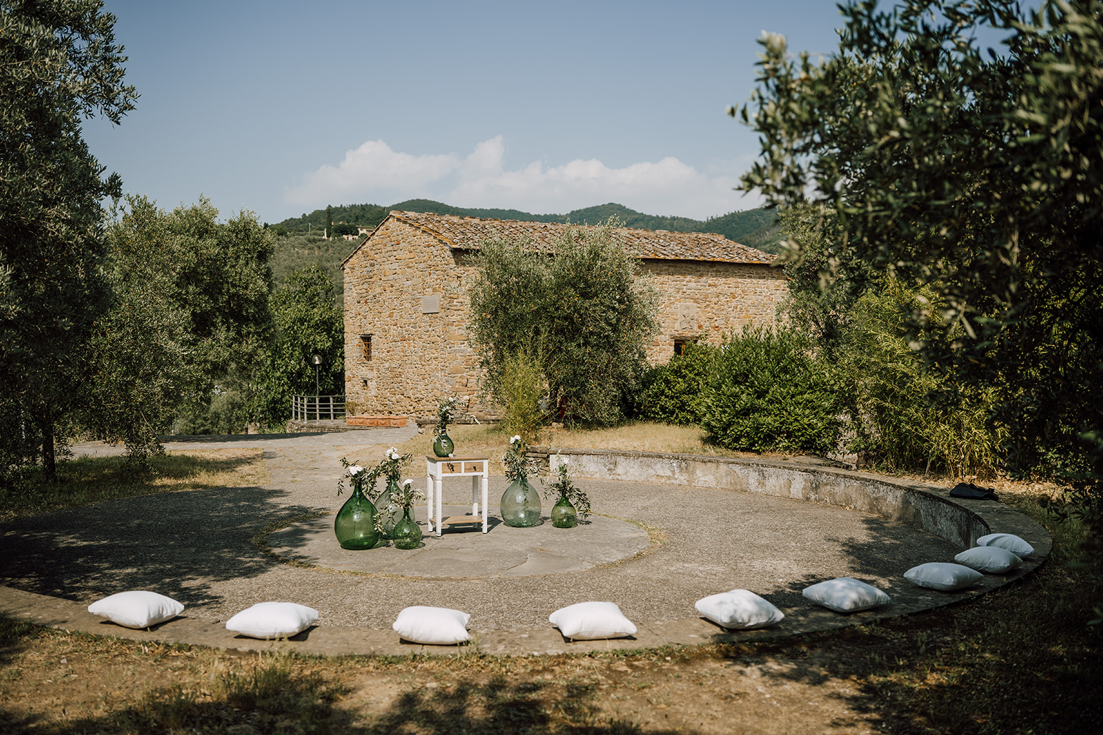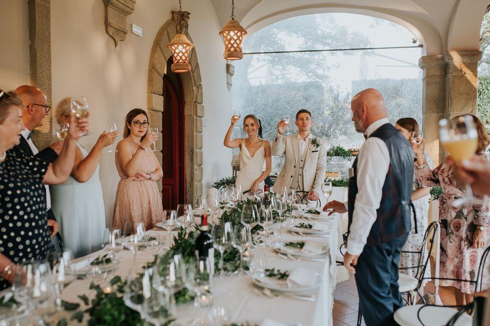 Ślub w pięknym, kamiennym budynku dawnego kościoła, z otwartym dachem.