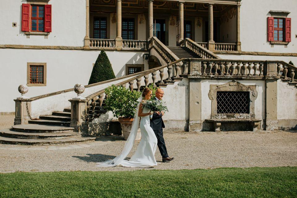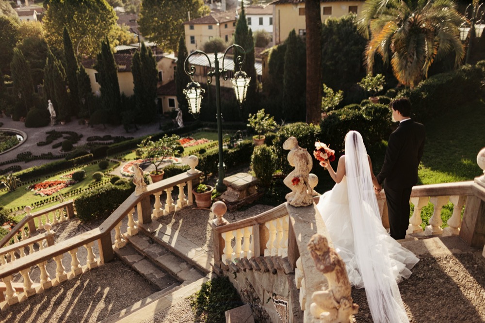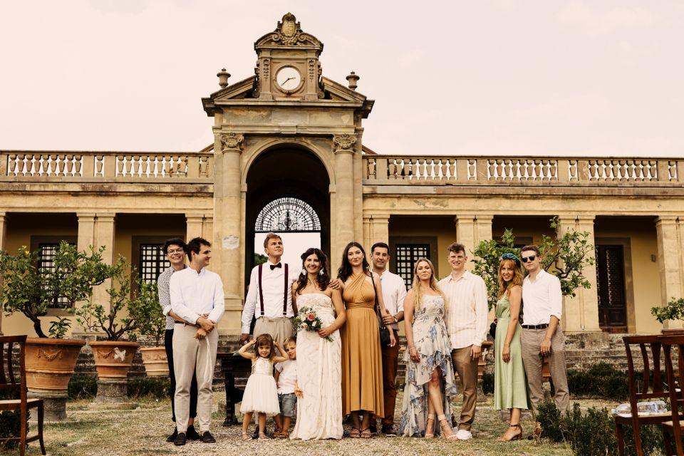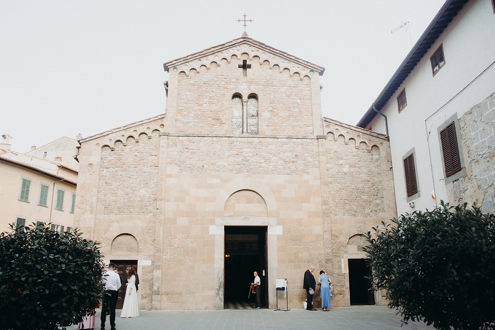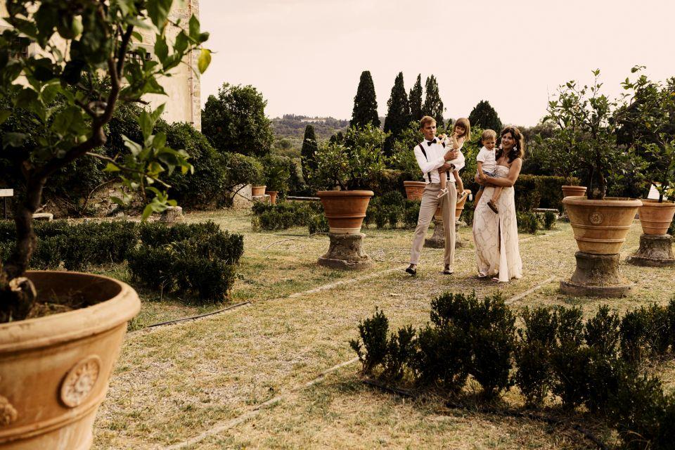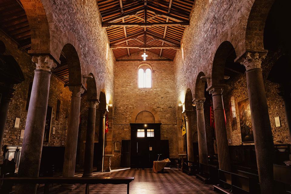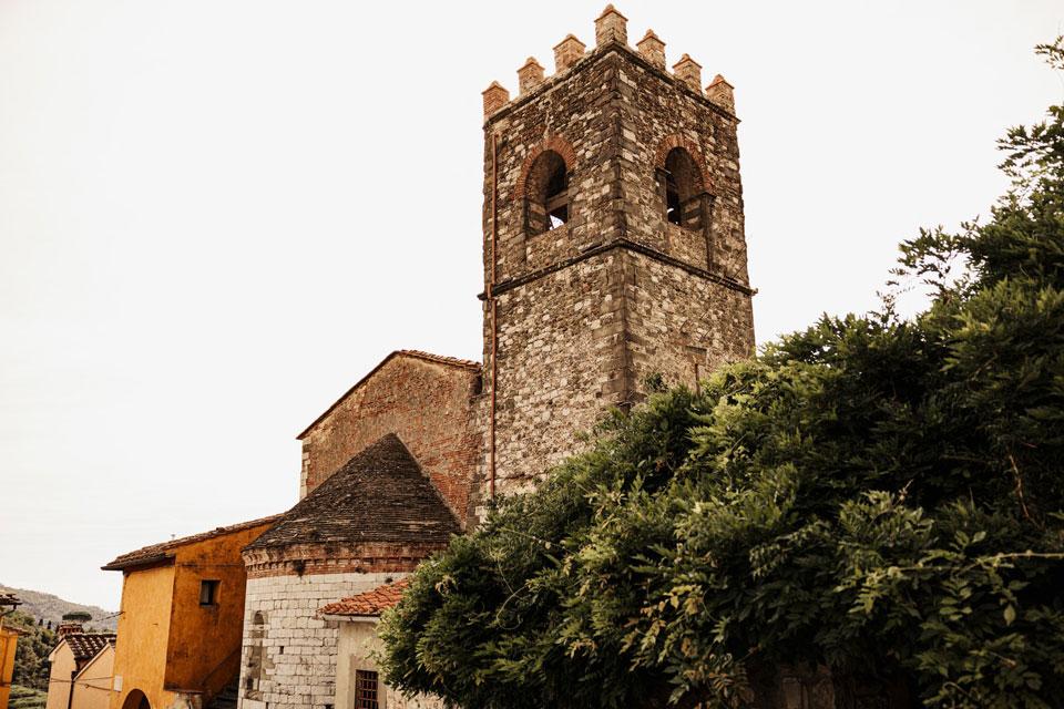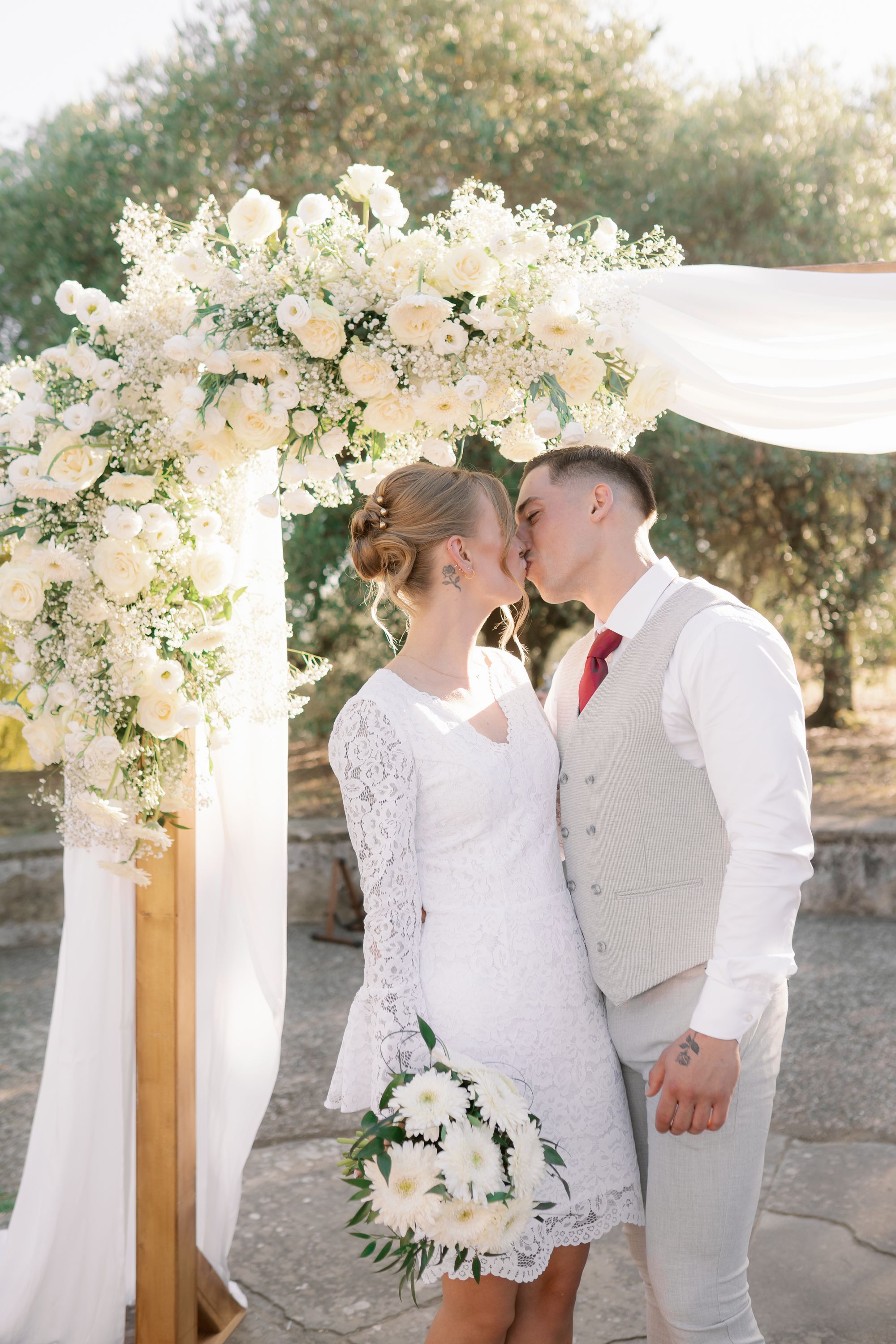 Ślub w pięknym, kamiennym budynku dawnego kościoła, z otwartym dachem.