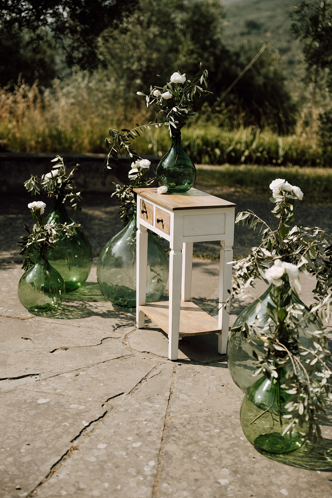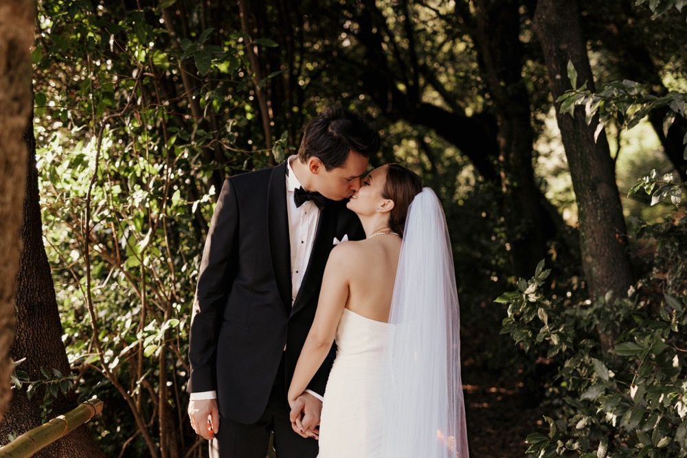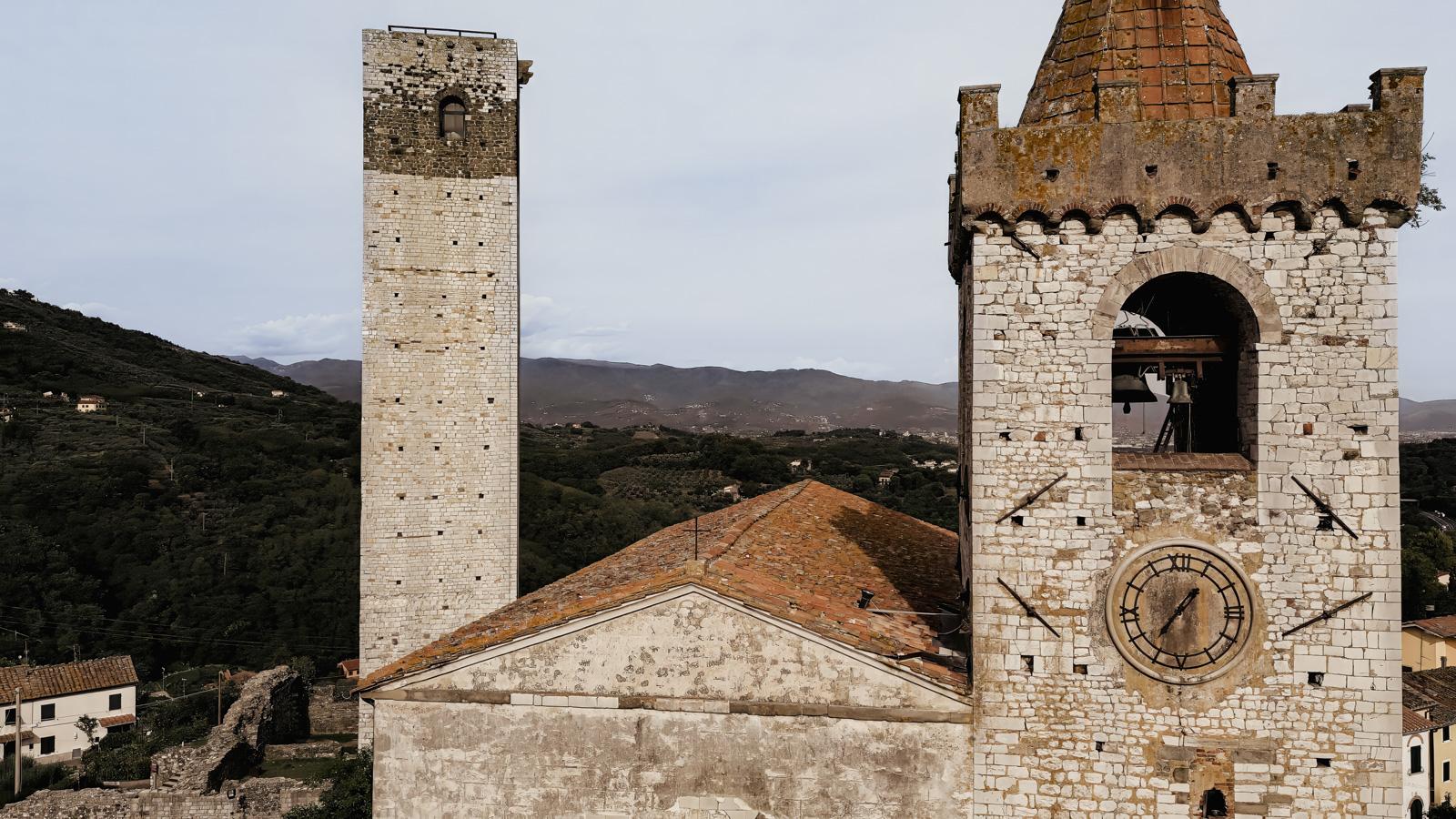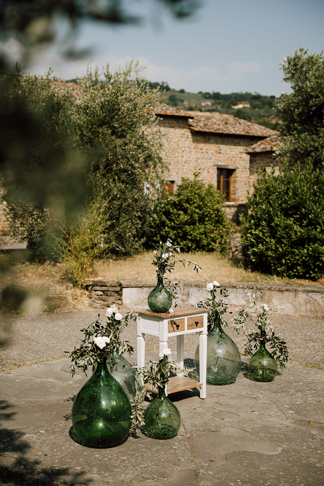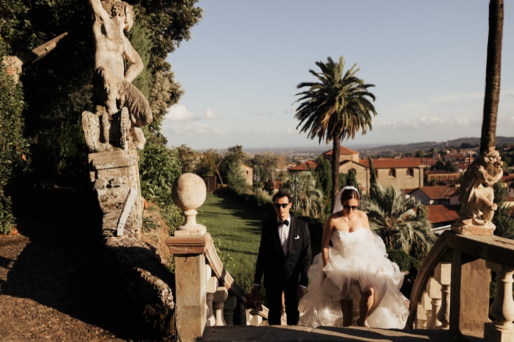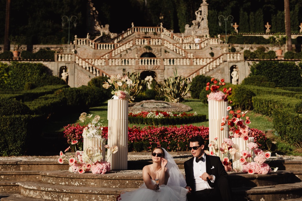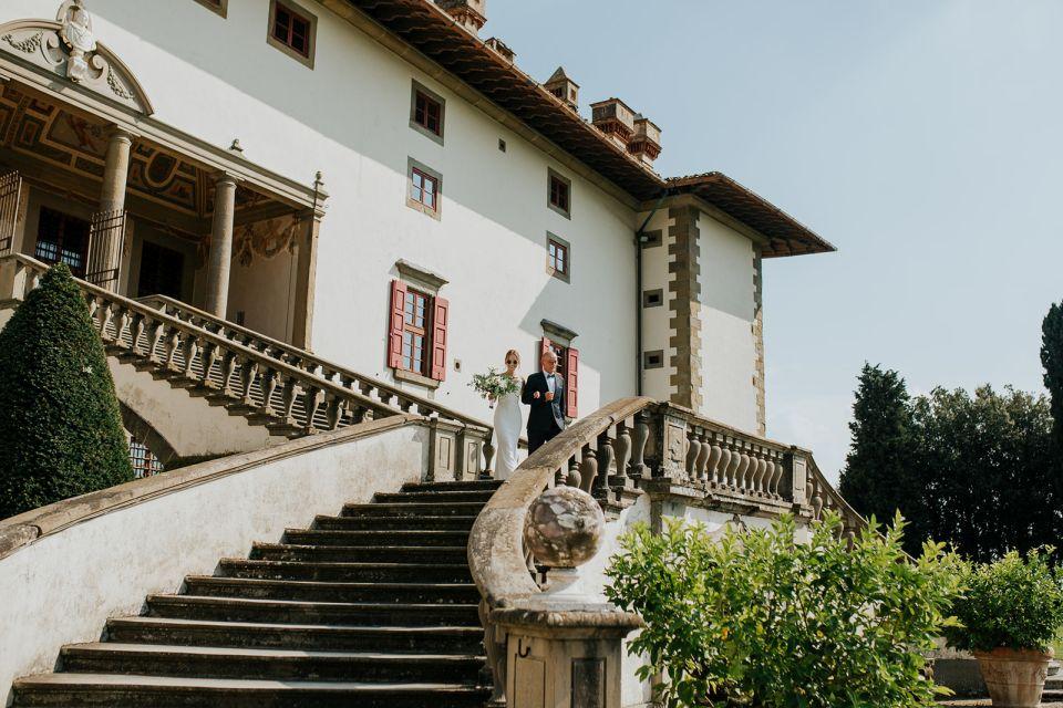 Ślub w pięknym, kamiennym budynku dawnego kościoła, z otwartym dachem.